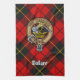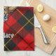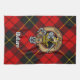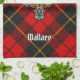 Clan Wallace crest badge surrounded by a strap and buckle over tartan background. Custom text.