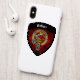 Clan Wallace crest badge surrounded by a strap and buckle over tartan background. Custom text.