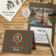 Clan Wilson crest badge surrounded by a strap and buckle over modern tartan background. Thank you card. Custom photograph. Custom text fields on both sides.