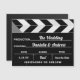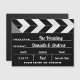 A fun and cinematic save the date magnet designed as a vintage film clapperboard, with customizable fields for "Production," "Starring," "Date," "Scene," and "Take." The distressed black texture gives this design an authentic, retro Hollywood feel that movie-loving couples will adore. All wedding details are fully editable to make it uniquely yours.