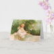 A charming vintage greeting card featuring a beautiful angel sitting on a wall and playing the harp surrounded by butterflies, painted by the American illustrator/commercial artist Ellen Hattie Clapsaddle.