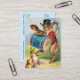 A charming vintage business card featuring a drumming rabbit and a little bunny dancing with a chick, painted by the American illustrator/commercial artist Ellen Hattie Clapsaddle.