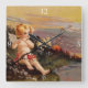 Clapsaddle: Little Cherub with Flute and Birds Square Wall Clock
