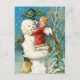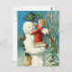 A charming vintage Christmas postcard featuring a snowman with an angel girl, painted by the American illustrator/commercial artist Ellen Hattie Clapsaddle.