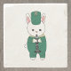 Do you like cute coasters? This coaster has a cute white rabbit playing the clarinet while wearing a green and gold marching band uniform.