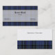 Stylish plaid business card done in the blue and black traditional Clark tartan pattern. The front of the card has a white semi transparent band, across the middle of the card, with custom black text. The back of the card is done in white, with a strip of plaid at the bottom, and black text on the white portion. Personalize all the text to suit your needs. Handsome and professional looking business card.