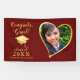 Create an elegant maroon red and gold graduation banner for the class of 2025 graduate with a heart-shaped photo, a "Congrats, Grad!" saying, and a graduate's cap illustration. Please personalize with the graduate's name, upload a custom photo via template, and change a year before ordering. The background color is customizable (you can change it inside the design tool).