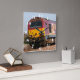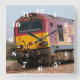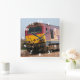 A square clock featuring class 67 diesel loco 67022. Originally commissioned to pull high speed mail trains, the 67 class engines now mainly haul charter trains, as in this photo. The clock has numbers.