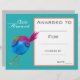 Class award cute blue bird children certificate
