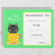 Class award cute cat children certificate