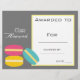 Class award cute macaron children certificate