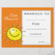 A stylish modern class award certificate award with cute sunshine image perfect for encouraging a young student. You can write in your own details. A great resource for any type of classroom teacher.