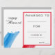 A school class academic award certificate award with a French flag blue white and red theme image in perfect for encouraging a young French language student. You can write in your own details. A great resource for any type of classroom teacher. Blue white and red theme