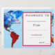 A grade school or high school class academic award certificate award with Geography world map perfect for encouraging a young social science student. You can write in your own details. A great resource for any type of classroom teacher.