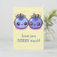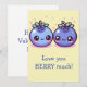This is a cute Valentine's card just right for the classroom this Valentine's Day. Two blueberries saying "Love you BERRY much!" It is a cute design of two cartoon berries on a soft yellow background to add warmth to the design.