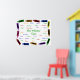A poster featuring illustrations of red, yellow, blue, green, orange, purple, pink, and brown crayons around the edges. Personalize with your name in center. Kids names go all around. There is room for 30. This is an easy alternative to the usual cutting, taping, and writing that goes into putting together a traditional bulletin board for your classroom.