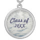 Graduating "Class of" necklace with clouds background. Change the year, add or change text, color and font to customize your necklace.