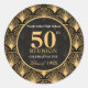 Elegant black and gold Art Deco round stickers designed for 50th class reunion favor bags and welcome bags. Perfect for sealing bags, decorating favors, and coordinating reunion décor.