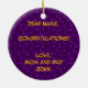 Lightweight, smooth, pure white ornament with nice sheen. Perfect size to be seen from across the room ... and to attract closer inspection! Price was great for ordering enough for the whole family! Clear, bold black design just as requested. Matches the order exactly. Just so nice!