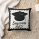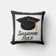 Custom Class Of 2016 throw pillow keepsake gift has a black polka dot background and scallop edge on this adorable graduation gift that makes a fun dorm room or bedroom decoration. Add her name and graduating class year to personalize.