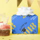 This graduation wrapping paper offers a 2018 graduation design in gold and blue with custom text for the graduate's name. The text reads: Class of 2018 Senior. A black mortarboard sits on top of the zero in the year. The background color can be changed by choosing customize.