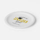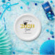 This personalized paper plate is perfect for any graduation party. The gold and black text reads: Class of 2020 Grad. A black mortarboard sits on top of the zero in the year.