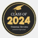 Class of 2024 Elegant black Gold Personalized Classic Round Sticker