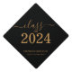 Perfect custom graduation cap for the graduate! Celebrate your grad's accomplishment in style with this graduation cap topper. Design features "Class of 2024" elegant gold typography text against a black background. Personalize this product by adding your graduation year, grad's name and school details. Easy to customize. Congratulations!