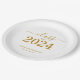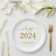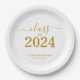Stylish elegant custom graduation party supply! Celebrate the graduate's accomplishment in style with this trendy graduation paper plates. Design features "Class of 2024" in gold font on a clean white background. Personalize this product by adding the name and school name. Easy to customize. Matching graduation party supplies available. Congratulations!