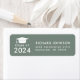 Elegant White graduation return address label featuring a green grad cap and the graduate's name and address in modern .