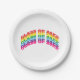 Class of 2024 rainbow colors custom rainbow curved text typography modern fun graduation Party paper plates.