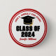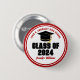 This modern red and white custom Class of 2024 graduate button features your high school or college name. Customize with your graduating student name under the cool script and black grad cap for a great personalized graduation gift.