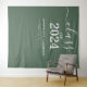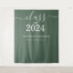 This minimalist and modern graduation backdrop/photo booth/prop tapestry features a sage green background with the words "class of 2024" in elegant stylish font. Customize name and school name of your graduate. Easy to customize.