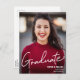 Personalize this modern graduation announcement postcard with your girl graduate's photo, name, class year and school name. Include a special greeting on the back, your return address and other details. Modern script font typography, elegant and chic. Share your excitement to family and friends on your grad's accomplishment.