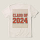 This t-shirt features a graphic design text layout with the text CLASS OF 2024 in collegiate-style lettering. The text is a bright orange-red color with a black outline and white inner border. The letters are arranged in two lines, with CLASS OF on top and 2024 below. The font has a varsity or sports team aesthetic with neat edges and a blocky, dimensional style. The text is centered on a plain off-white background. The design has a neat, modern appearance with contrast between the text and background. The typography style is commonly used for graduation announcements or school-related graphics. The t-shirt is a Women's Bella Canvas Tri-Blend t-shirt. The t-shirt is soft and comfortable.