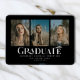 GRADUATE Class of 2025. Modern Minimalist Typography, 3 photo graduation announcement. Features, 3 vertical portrait photos on front and solid black color backgrounds.