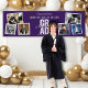 Bold GRAD Typography Faux Silver Foil On Dark Purple, Congratulations To Graduate Class Of 2024/2025, Six Multi Photo Collage Unisex Graduation Party Banner.