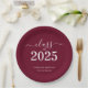Stylish elegant custom graduation party supply! Celebrate the graduate's accomplishment in style with this trendy graduation party paper plates. Design features "Class of 2025" in white stylish font on a burgundy background. Personalize this product by adding the name and school name. Easy to customize. Matching graduation party supplies available. Congratulations!