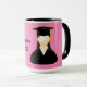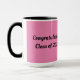Combo mug in black, white and pink, features a clip art picture of a female graduate, with the message, "Congratulations Class of 2025". A great gift for the gal graduate! You can personalize the text and year, microwave and dishwasher safe too!