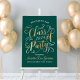 Stylish graduation party welcome sign features an elegant faux gold foil "Class of 2025 Party" design in script with pretty scroll accents. Includes elegant custom gold and white colored text that can be personalized with the graduate's name and high school. Note, the emerald green background can be customized.