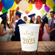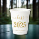 Stylish elegant custom graduation party supply! Celebrate the graduate's accomplishment in style with this trendy graduation party paper cups. Design features "Class of 2025" in gold font on a clean white background. Personalize this product by adding the name and school name. Easy to customize. Matching graduation party supplies available. Congratulations!
