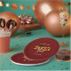 This maroon personalized paper plate is a perfect accent for any graduation party. The gold and white text reads: Class of 2025 Grad. A black mortarboard sits on top of the zero in the year.