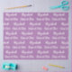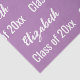 The wrapping paper sheets are lavender. All of them have a text pattern for the graduate's name and Class of 20xx. The name (Shown: Elizabeth) appears in an elegant white script. The other text is also white. All of the text can be edited.