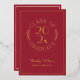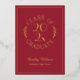Send elegant maroon and gold graduation invitations for your graduate's celebration featuring a chic gold foil typography emblem which reads: CLASS OF [YEAR] GRADUATE with the words curving around the year in the middle with curved botanical leaves along each side of the circular design. Below the emblem is the graduate's name in a gold foil script font and their school in a sleek serif font. A fine gold foil rectangle creates a border near the edge.