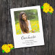 Class of 2025 Graduation announcement postcard, with a simple photo and an elegant script typography design. With gray customizable lettering, you can add your name and date. You also change the photo with your own image. Great for congratulating that special special graduate.