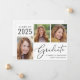 Simple Class of 2025 graduation announcement featuring a 3 picture photo collage and "Graduate" in an elegant script. Add the grad's name, class year and school or university in modern typography.