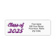 Graduation return adress label with Class of 2025 in 3D purple text.