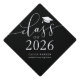 Perfect custom graduation cap for the graduate! Celebrate their accomplishment in style with this graduation cap topper. It says "Class of 2026" in typography text against a black background. Personalize this product by adding their name and school name.