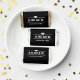 Simply elegant custom Hershey's Miniatures graduation party chocolate candy favors feature a stylish and minimalist typography design with grad cap and stripe accents. Personalize the bold white modern name text for your graduate and include their class year. Optional custom Congratulations message appears on the back of the wrapper. Black background color can be changed to match school or party colors.
