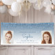Welcome graduation party guests or simply announce her achievement with this chic, glamorous photo banner, featuring a sparkly blue faux glitter drip border and blue ombre background. Easily replace the two sample images with photos of the graduate. Personalize it with her name in blue handwriting script, with the class year and school in sans serif font. Perfect for high school or college graduation.